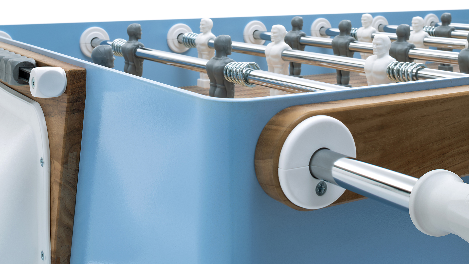 Capri di FAS Pendezza, edizione speciale del calciobalilla Ciclope by Basaglia + Rota Nodari, è ispirato alle auto “spiaggina” degli anni ’50 con la struttura azzurra, inserti in legno chiaro e il piano di gioco in vimini stampato.