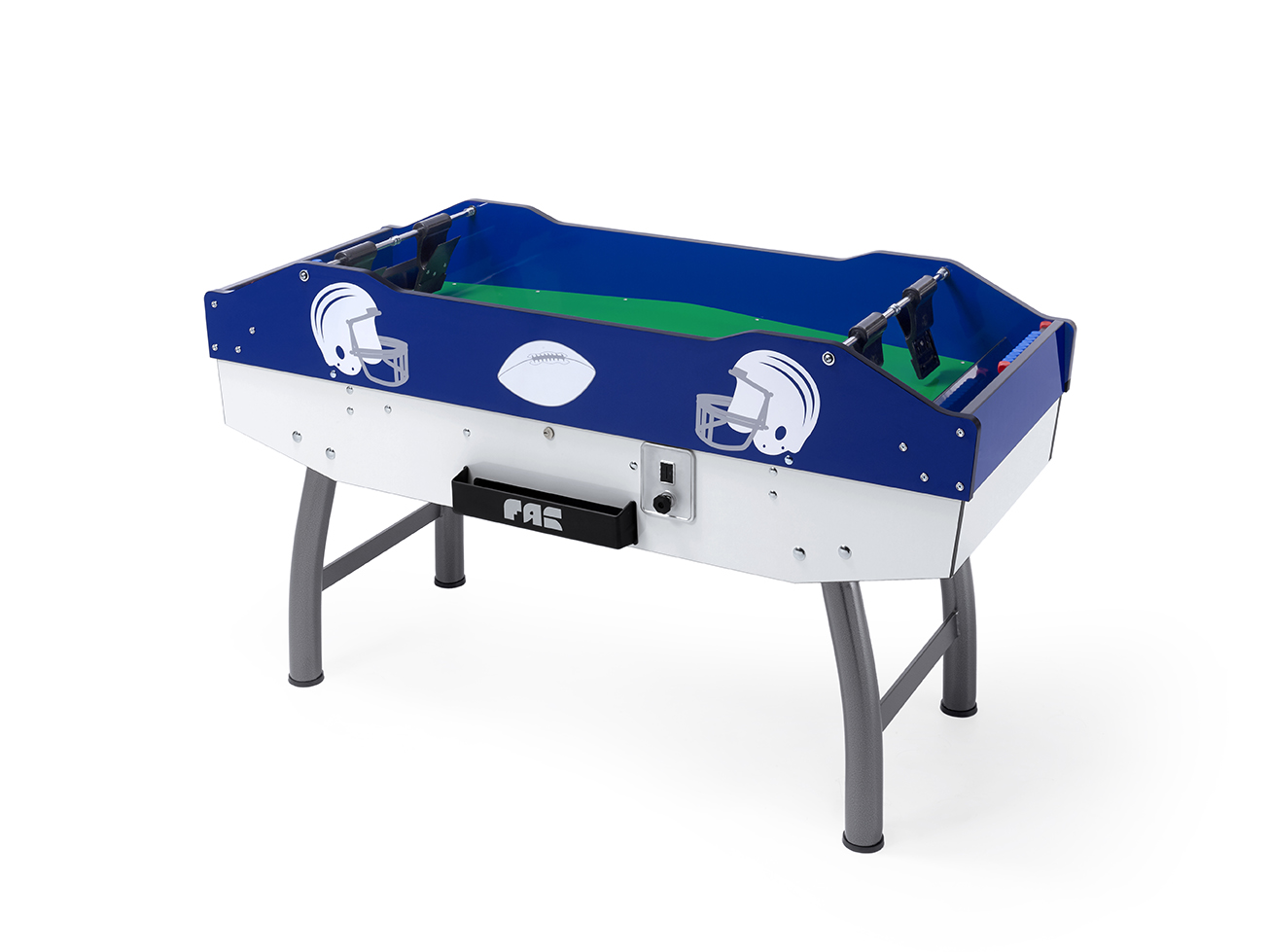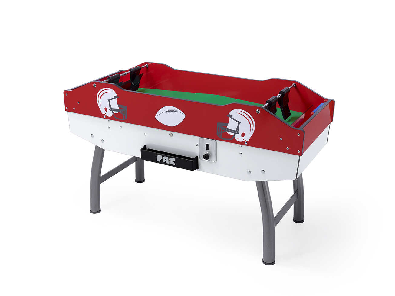 IlTam Tam FAS Pendezza è disponibile in due colorazioni, bianco-blu e bianco-rosso e provvisto di una splendida serigrafia che richiama lo scopo e l’origine del gioco (il football americano) e che arricchisce il design del tavolo.