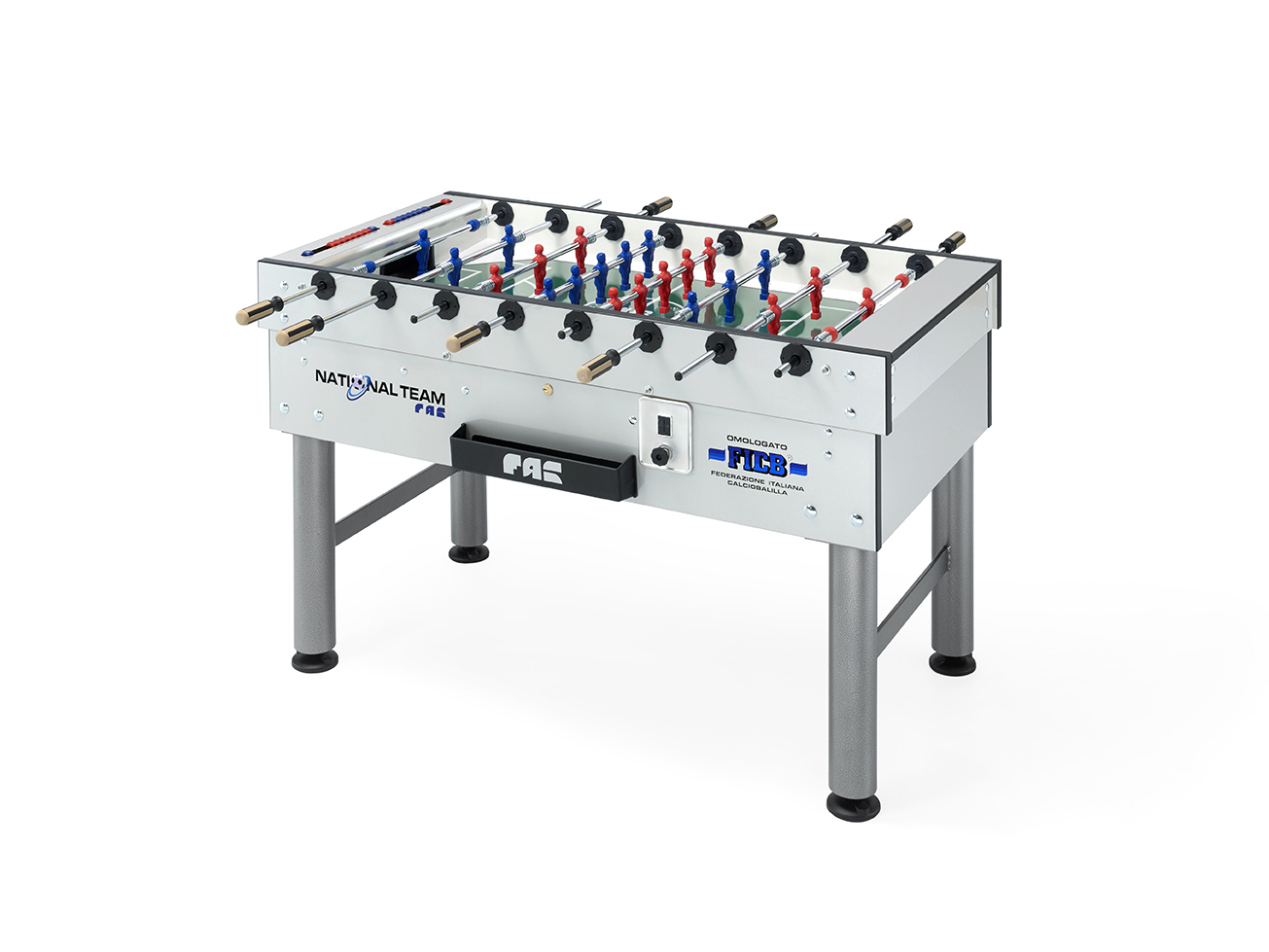 Parlando di calciobalilla professionali, il principe dei calciobalilla FAS è il National Team FICB, il nostro calciobalilla omologato dalla federazione. È costruito da un mobile in multistrato di pioppo spesso 30 mm, ricoperto di laminato plastico. È dotato di gambe pesanti e piedini regolabili per giocare su tutte le superfici. Inoltre, è provvisto di bolla di livella per essere sempre sicuri di giocare in piano e di manopole FAS, il nostro brevetto che garantisce una migliore presa.