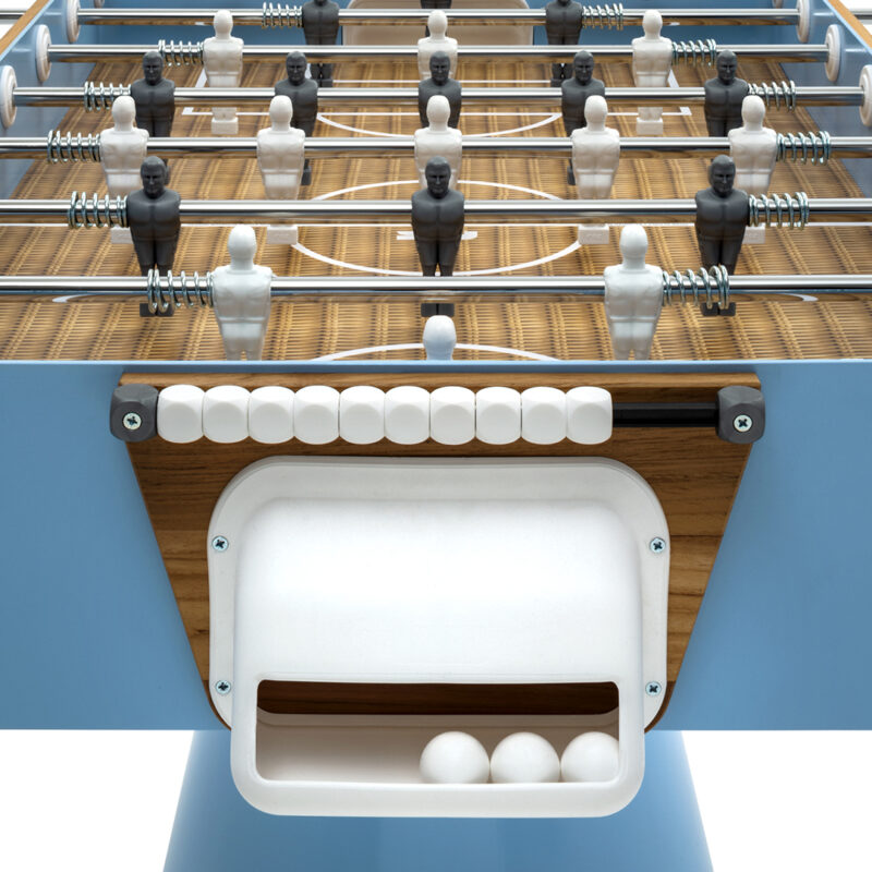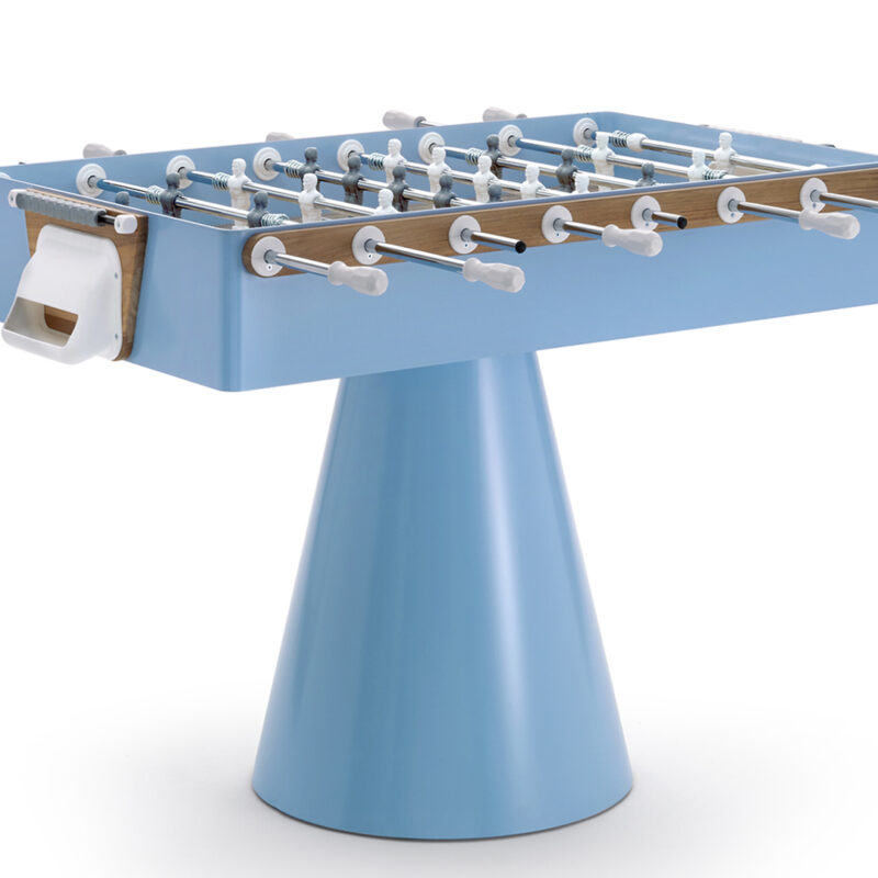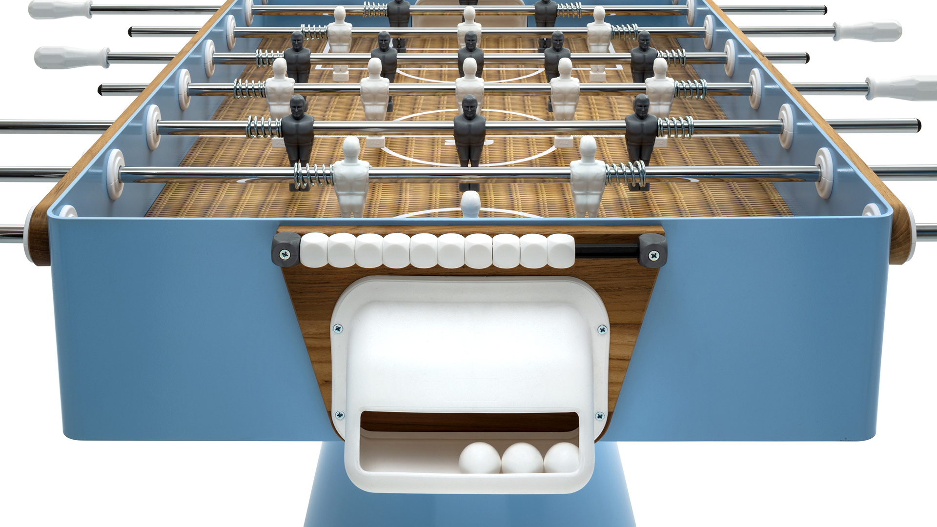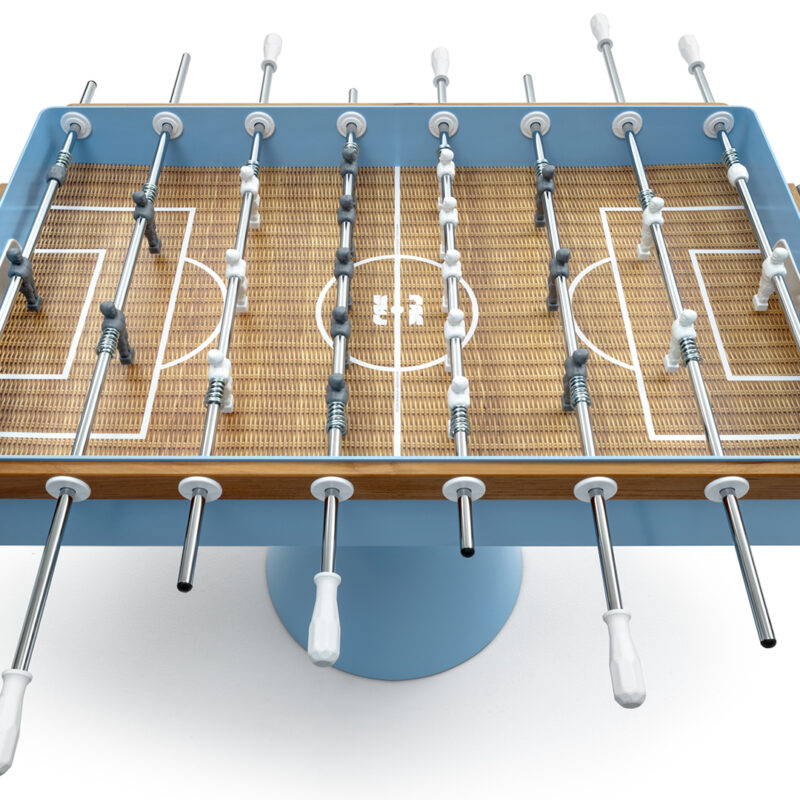 Capri, edizione speciale del calciobalilla Ciclope, è ispirato alle auto “spiaggina” degli anni ’50 con la struttura azzurra, inserti in legno chiaro e il piano di gioco in vimini stampato. Un omaggio di FAS Pendezza a Napoli e al suo amore per il calciobalilla e il mare.
