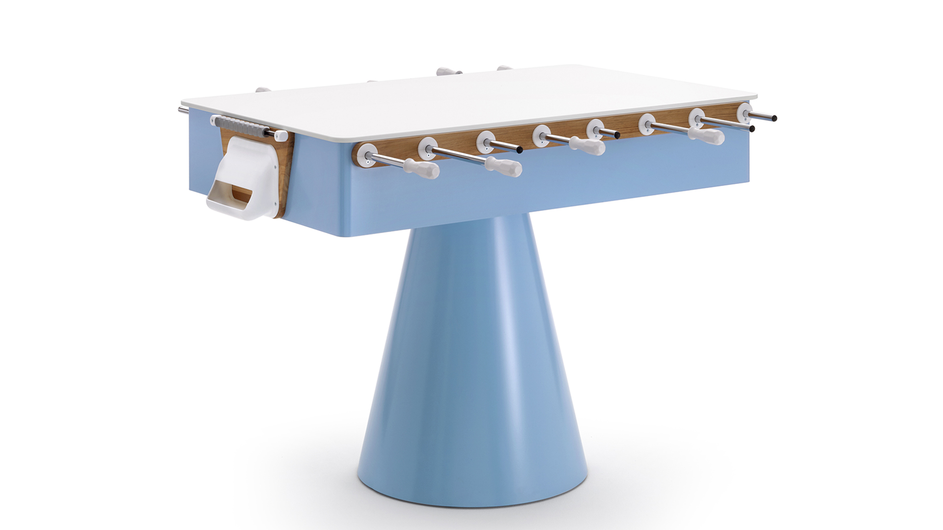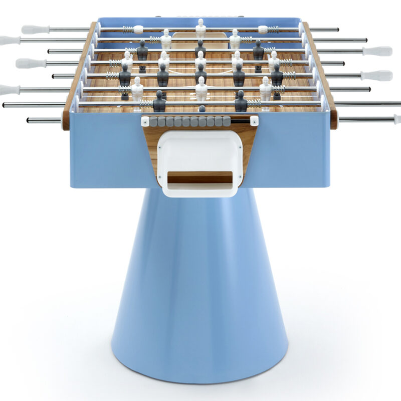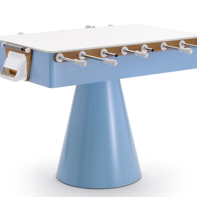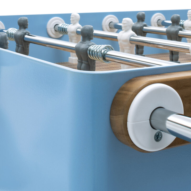Capri, edizione speciale del calciobalilla Ciclope, è ispirato alle auto “spiaggina” degli anni ’50 con la struttura azzurra, inserti in legno chiaro e il piano di gioco in vimini stampato. Un omaggio di FAS Pendezza a Napoli e al suo amore per il calciobalilla e il mare.