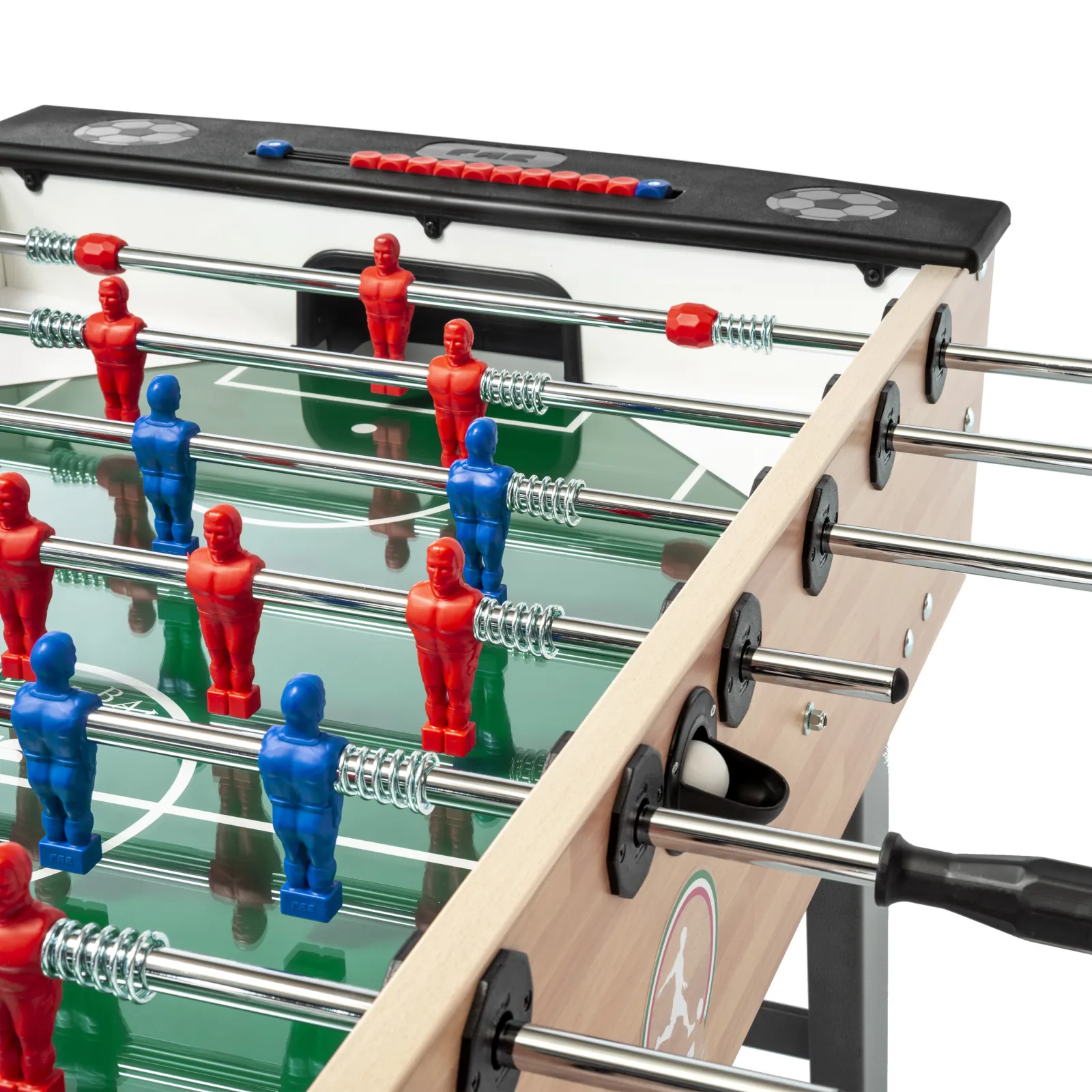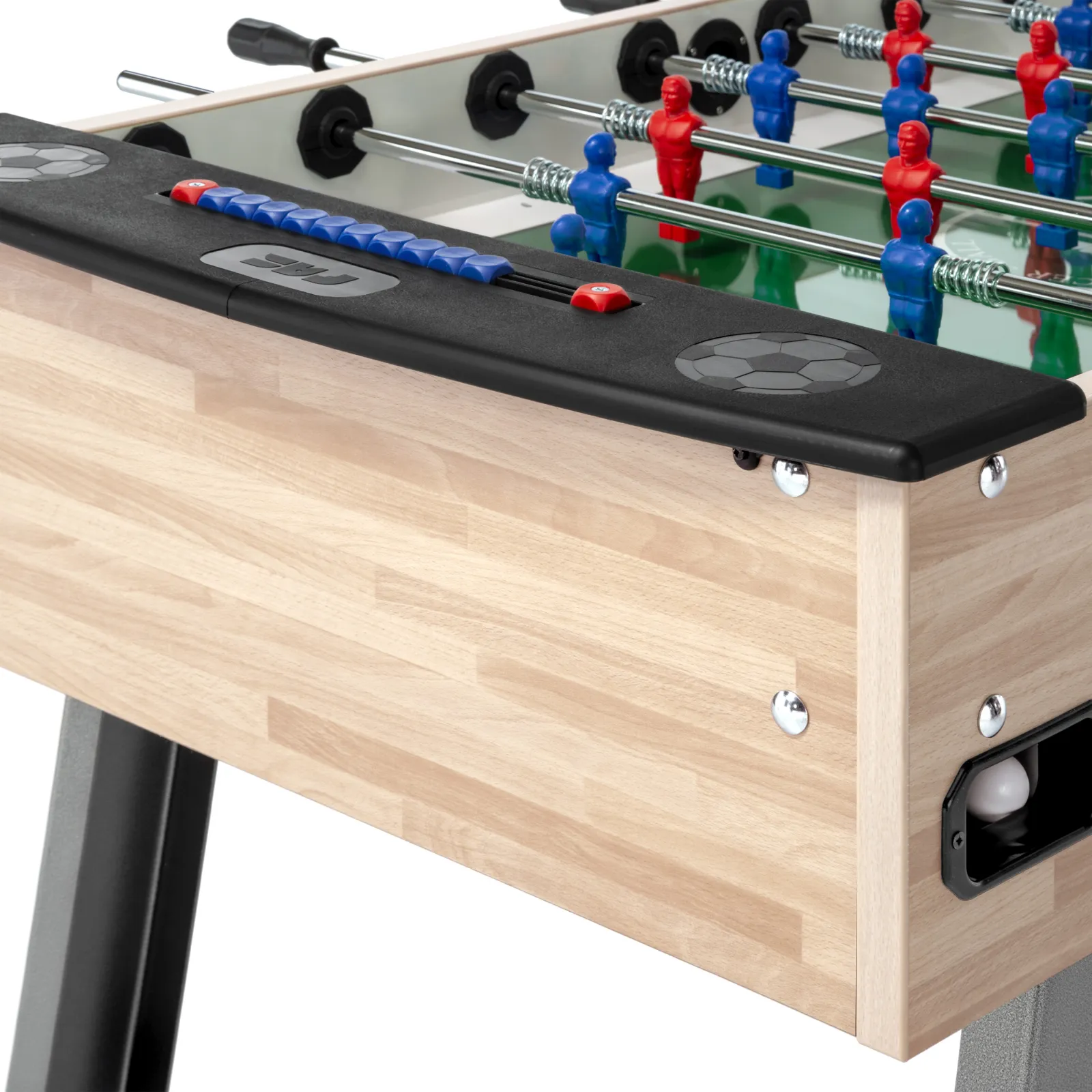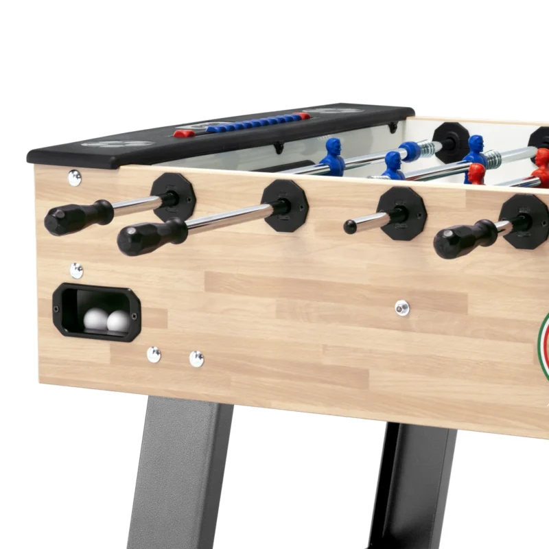 Robustissimo calciobalilla da interno dotato di molte peculiarità tra cui un comodo bocchettone di introduzione pallina e piedini regolabili, il CLUB presenta molte caratteristiche generalmente richieste sui mercati esteri e che FAS non ha esitato ad adattare al mercato italiano.