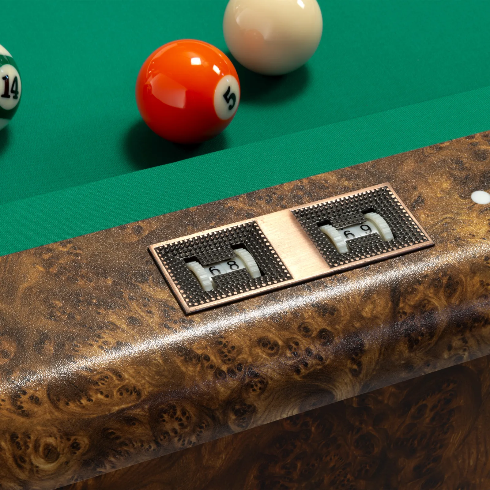 Accessori inclusi – 4 stecche; portastecche; set bilie numerate Ø 57; scatola gesso; triangolo per bilie; spazzola