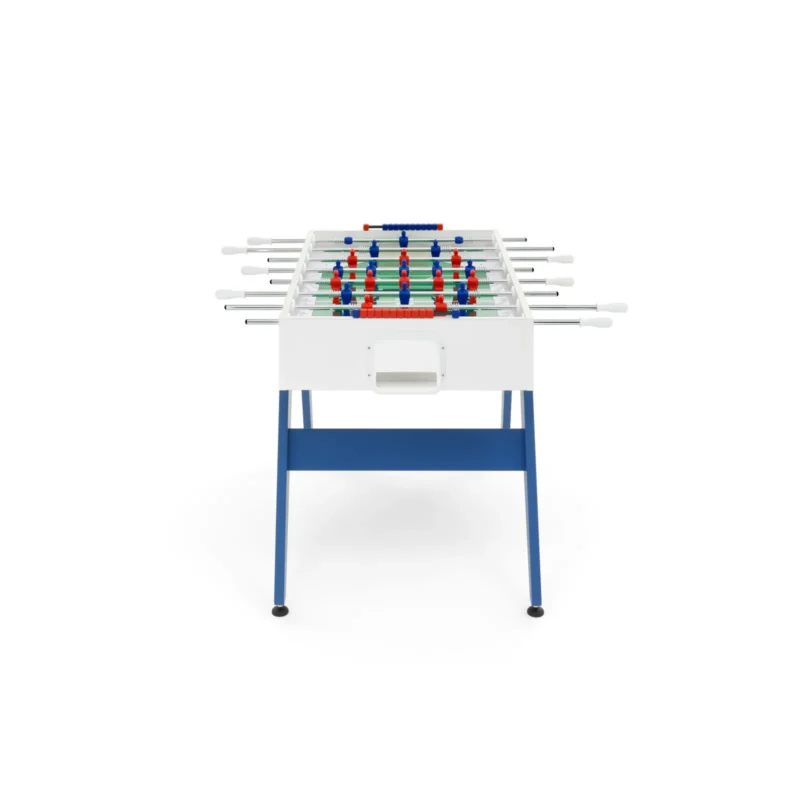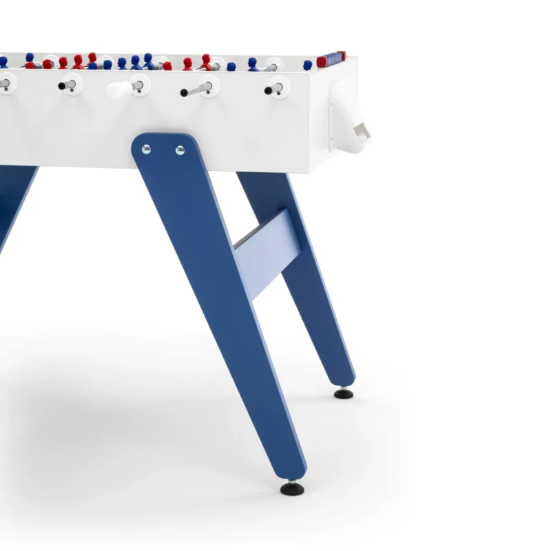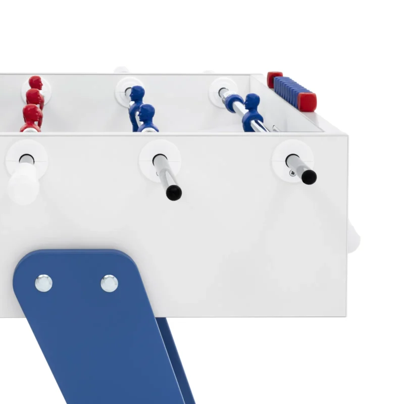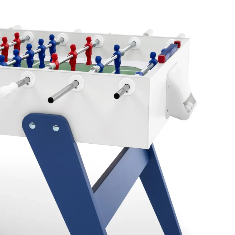 Cross è un calciobalilla contemporaneo apprezzato per le sue linee essenziali, che ricordano un design classico e allo stesso tempo intramontabile. Una linea ricercata e pulita si forma dalla connessione tra gambe e top per mezzo di borchie metalliche. Il colore blu e rosso delle gambe si abbina ai colori dei giocatori: Cross è ricerca ed essenzialità, Cross rispecchia ciò che siamo.