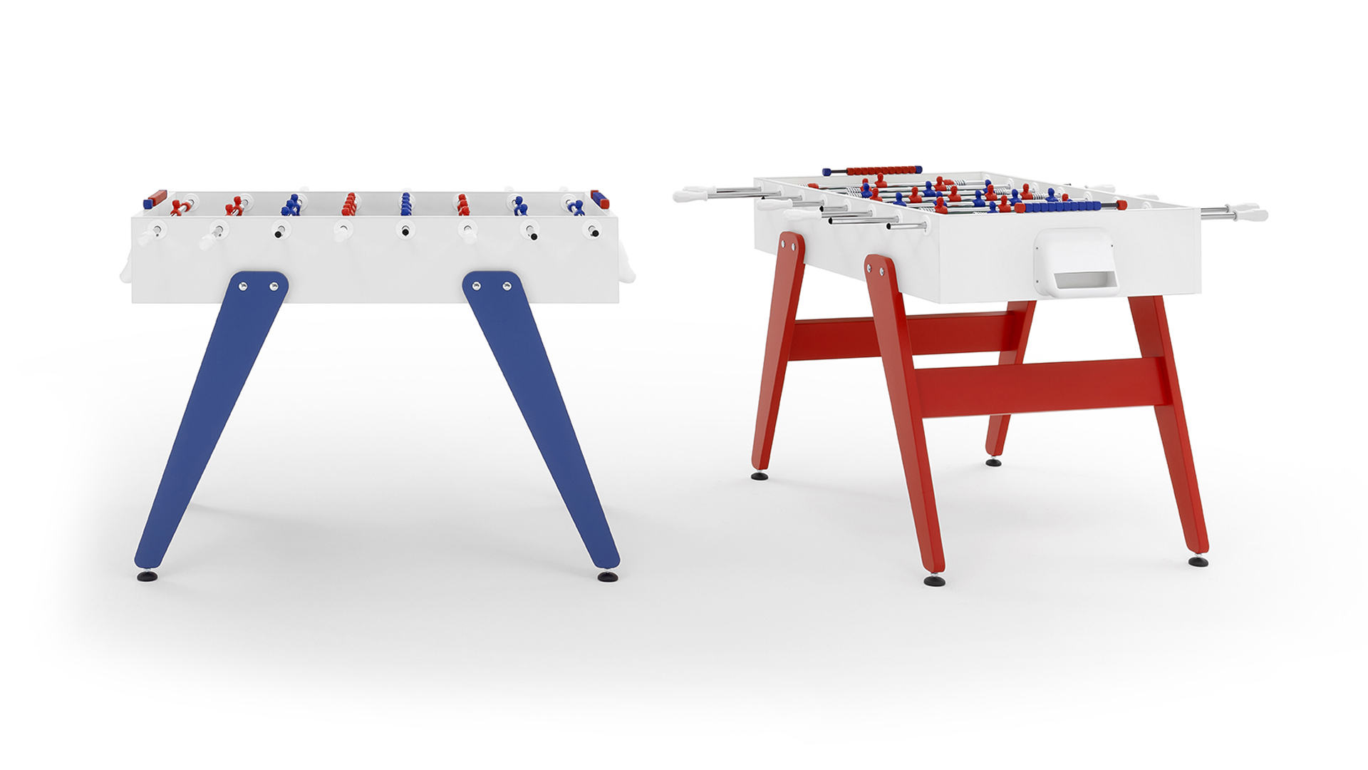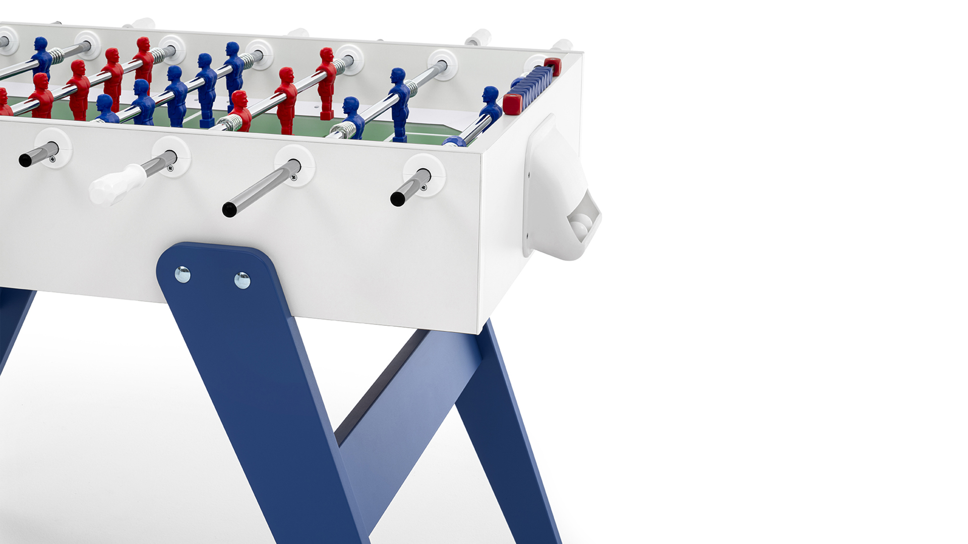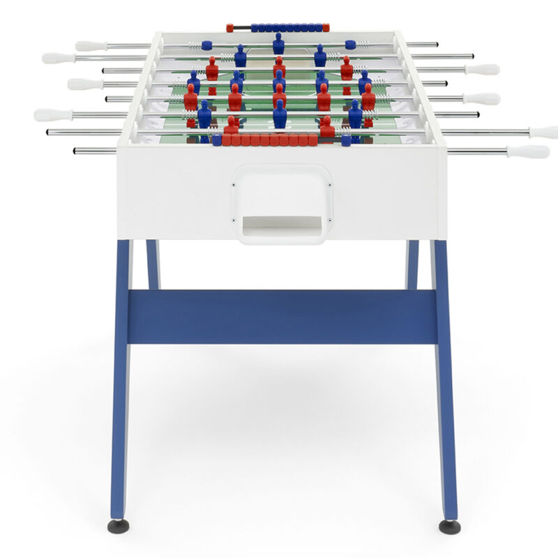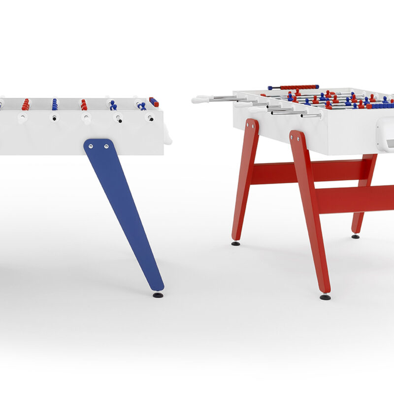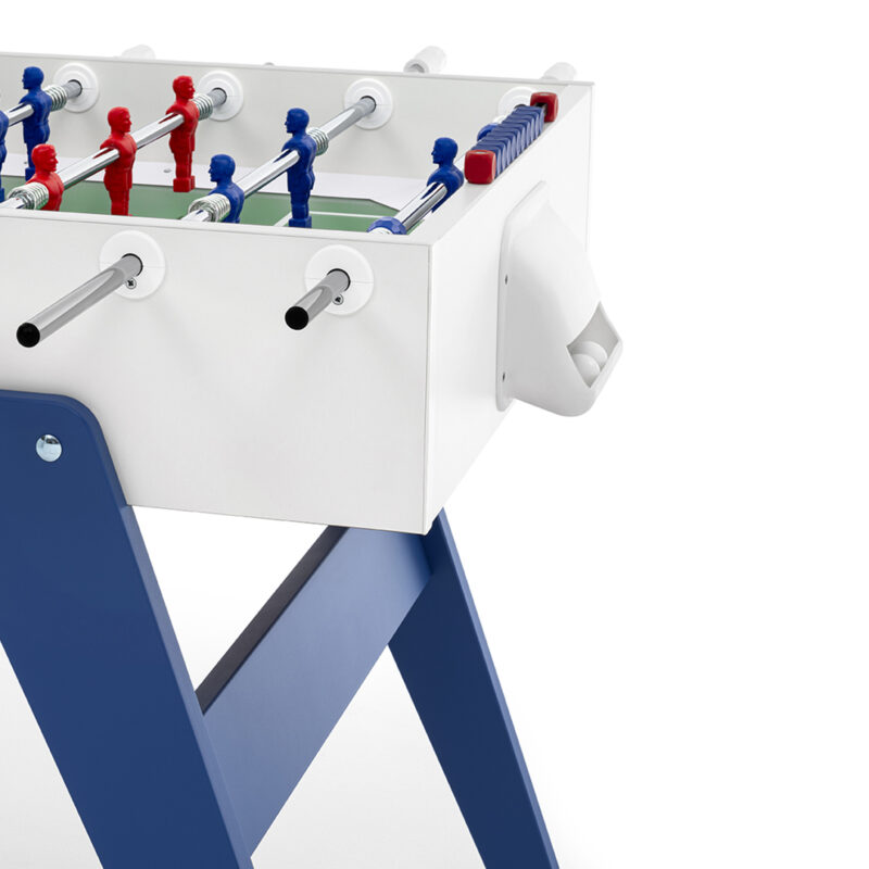 Cross è un calciobalilla contemporaneo apprezzato per le sue linee essenziali, che ricordano un design classico e allo stesso tempo intramontabile. Una linea ricercata e pulita si forma dalla connessione tra gambe e top per mezzo di borchie metalliche. Il colore blu e rosso delle gambe si abbina ai colori dei giocatori: Cross è ricerca ed essenzialità, Cross rispecchia ciò che siamo.