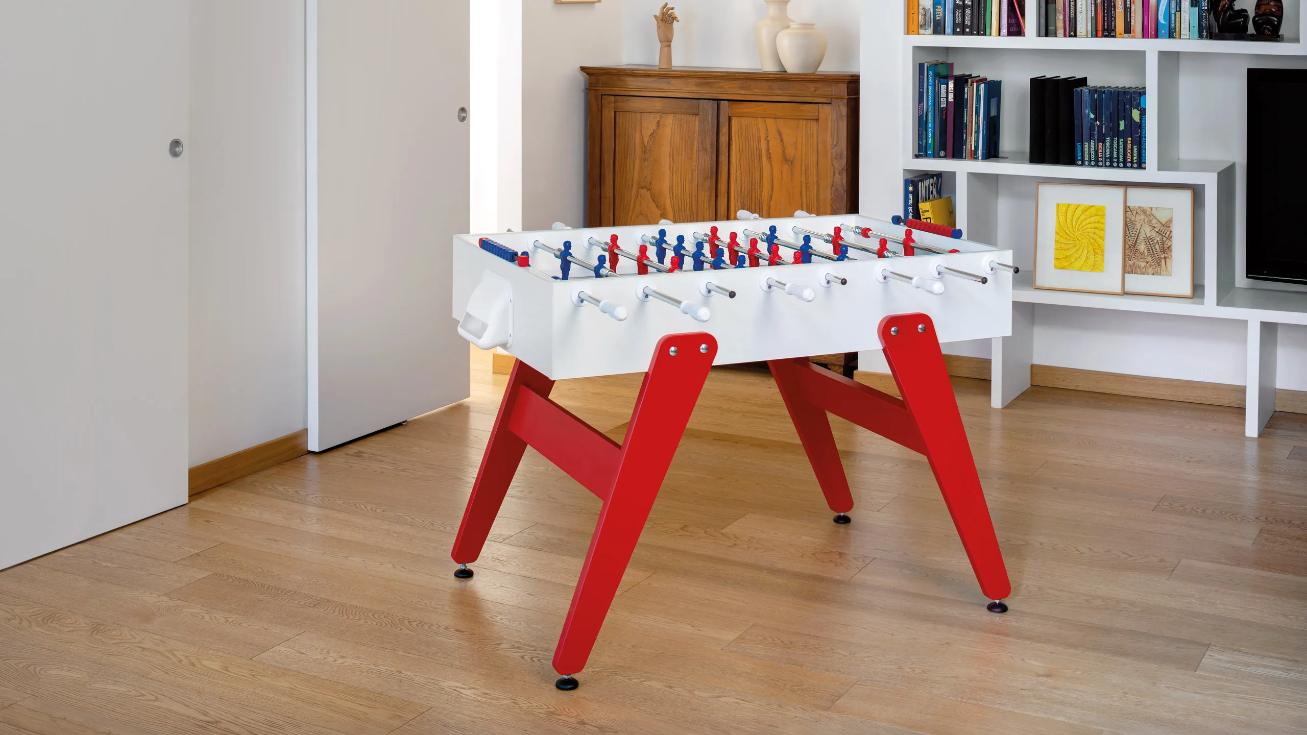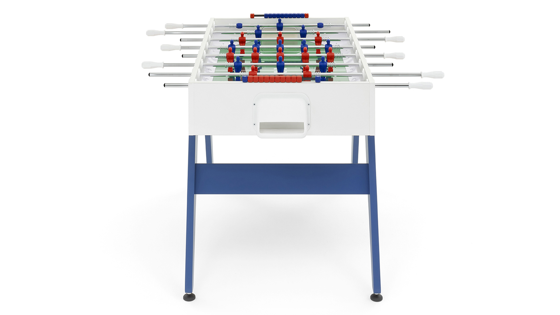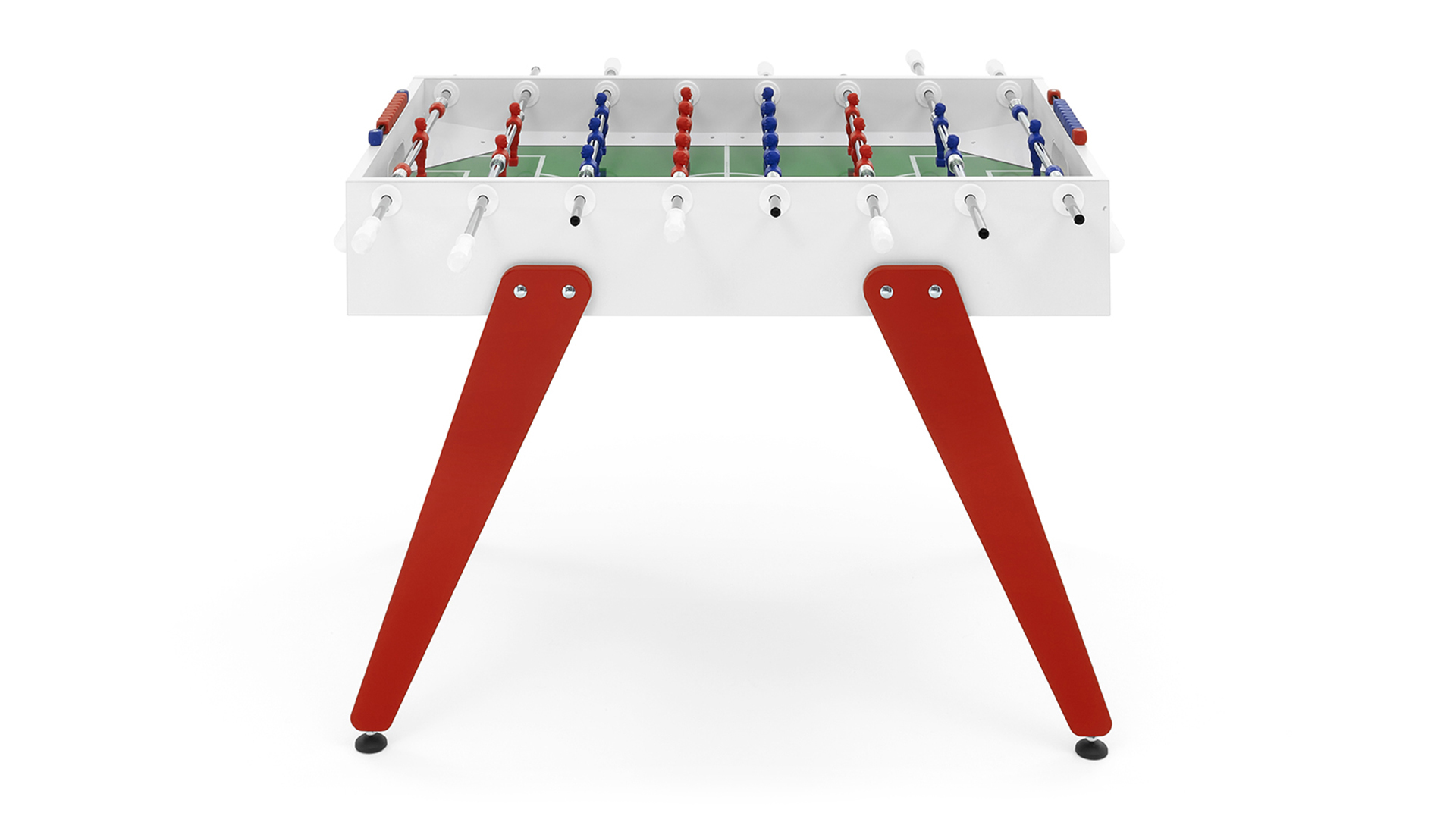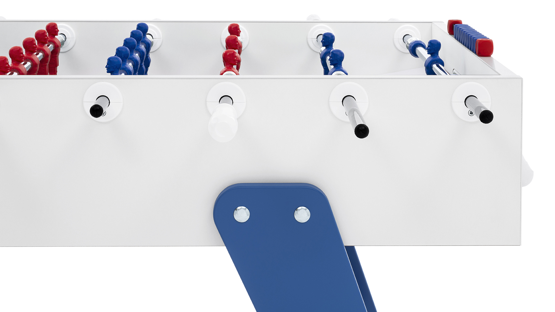 Cross è un calciobalilla contemporaneo apprezzato per le sue linee essenziali, che ricordano un design classico e allo stesso tempo intramontabile. Una linea ricercata e pulita si forma dalla connessione tra gambe e top per mezzo di borchie metalliche. Il colore blu e rosso delle gambe si abbina ai colori dei giocatori: Cross è ricerca ed essenzialità, Cross rispecchia ciò che siamo.