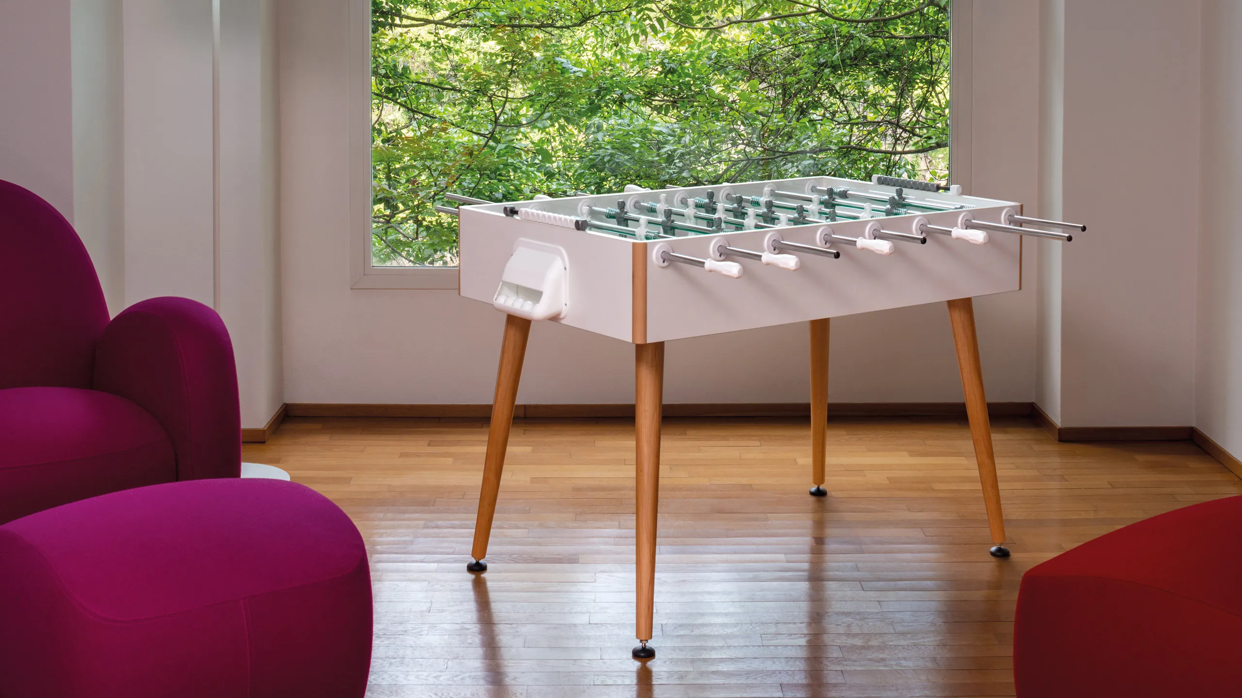 Flamingo è connotato da linee pulite con l’aggiunta di dettagli di pregio, come gli angolari e le gambe tornite in legno di faggio, inclinate per dare maggiore stabilità al gioco. Le colorazioni disponibili sono bianco, antracite e rosso, colori che rendono Flamingo un raffinato accessorio capace di introdursi elegantemente nell’ambiente domestico ed office.