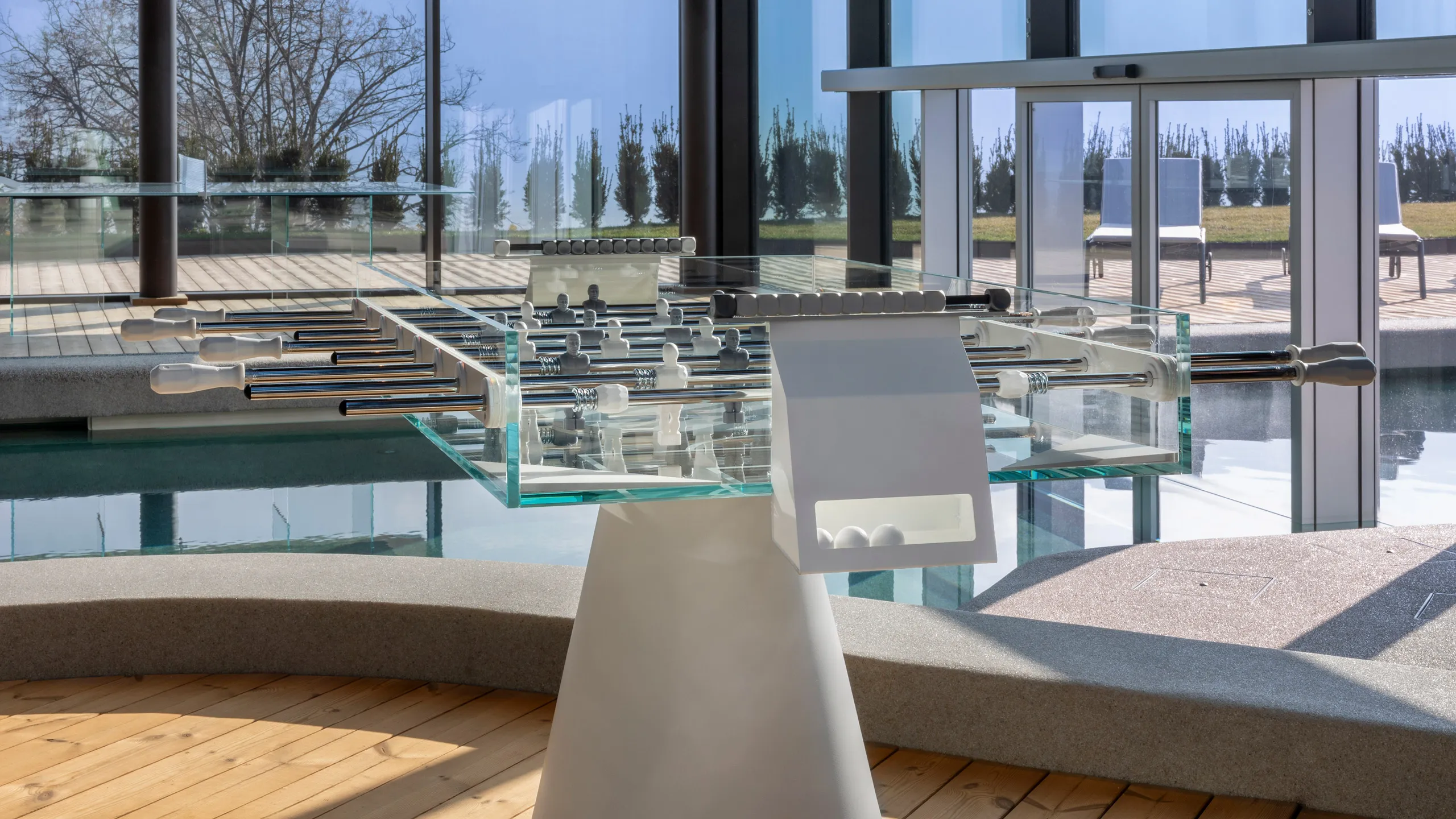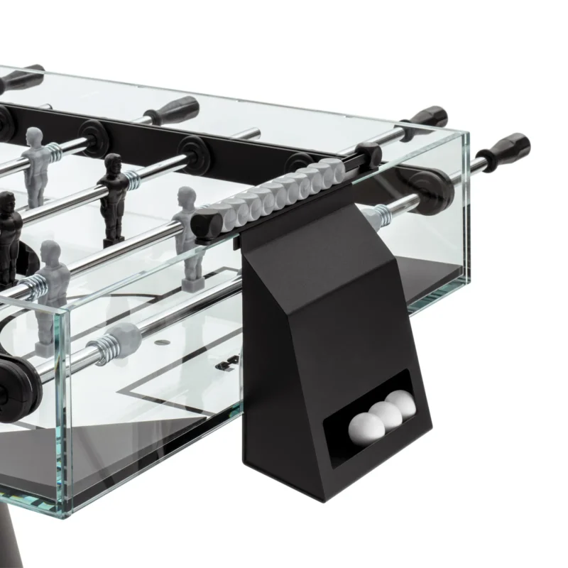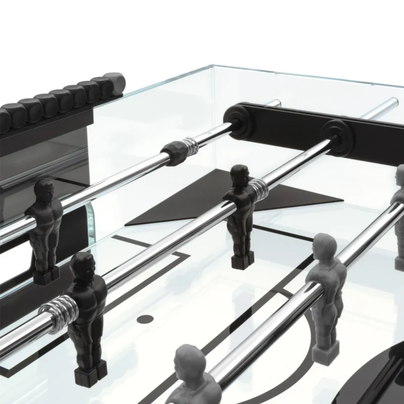 Ghost ha un portamento elegante e affascinante, è una presenza preziosa dalla personalità discreta. Non è un oggetto da “guardare e non toccare” ma è un calciobalilla professionale perfetto sia per le sfide tra campioni che per gli appassionati di questo gioco. Ghost ha un campo da gioco in cristallo trasparente e finiture in metallo.