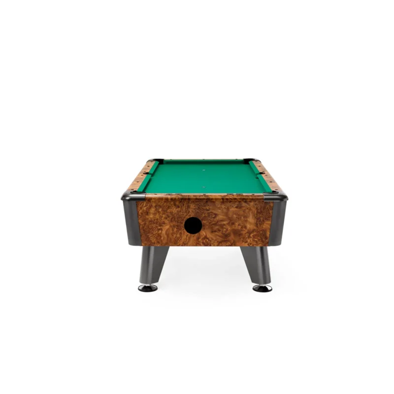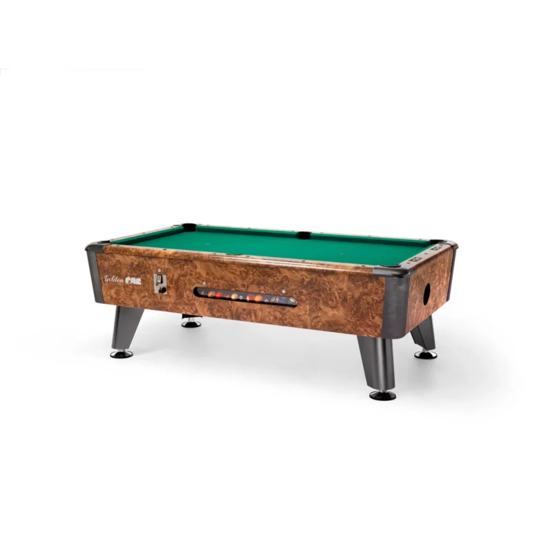 L’elegante biliardo (pool americano) professionale modello GOLDEN, progettato e costruito per un utilizzo intensivo e specifico per sale da biliardo e locali da intrattenimento, poiché dotato di gettoniera.