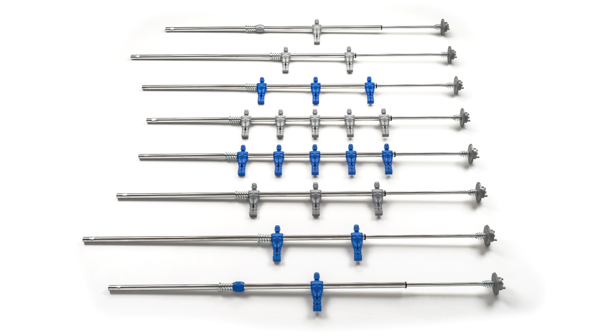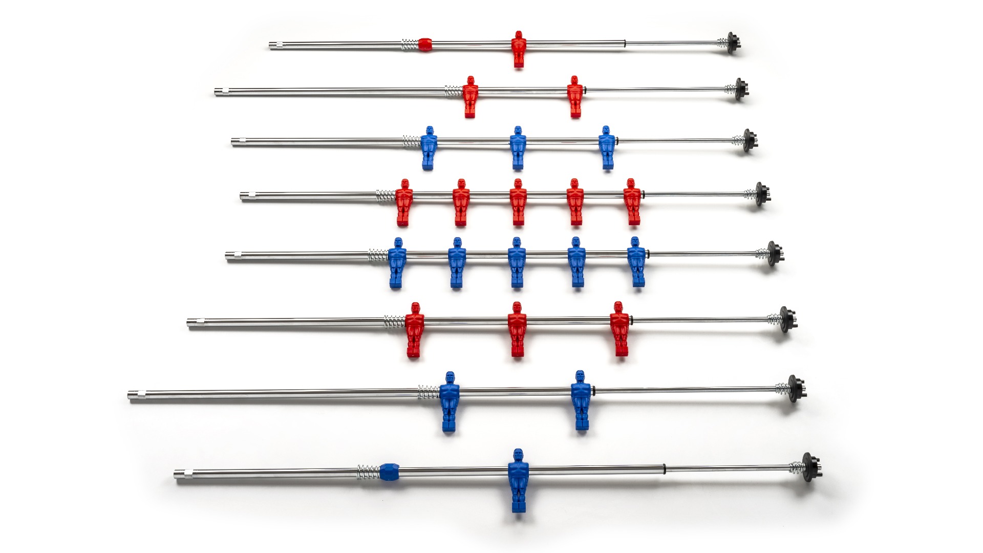 Trovi aste passanti e telescopiche, boccole di scorrimento, manopole ergonomiche e piedini regolabili: ricambi originali, facili da installare e progettati per durare nel tempo, così da garantire sempre un biliardino pronto all’uso.